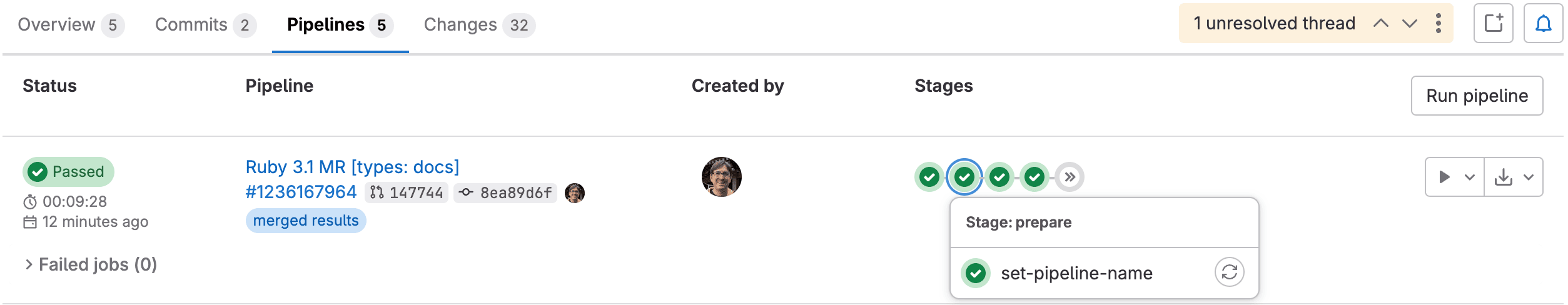 - Run pipeline name changed to New pipeline in GitLab 17.7.
