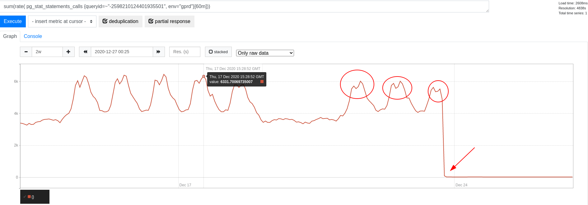 for 1 second, query frequency dramatically dropped:
