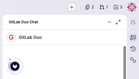 On the right, the GitLab Duo sidebar has buttons to access GitLab Duo Chat and related sessions.