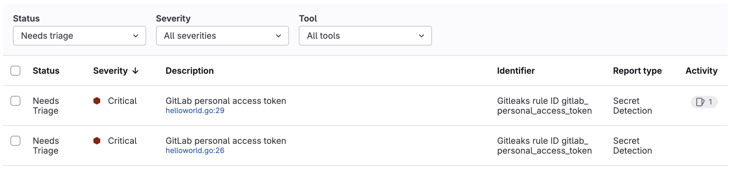 You can change the status, severity, or both of a finding or vulnerability in the pipeline's security tab. Any changes made to a finding persist when the branch is merged into the default branch.