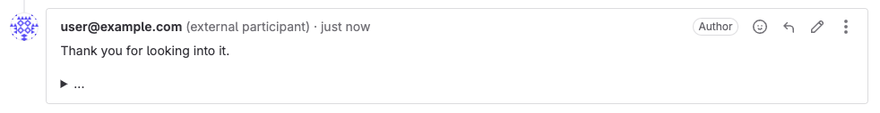 GitLab adds the external author of a Service Desk ticket as an external participant.